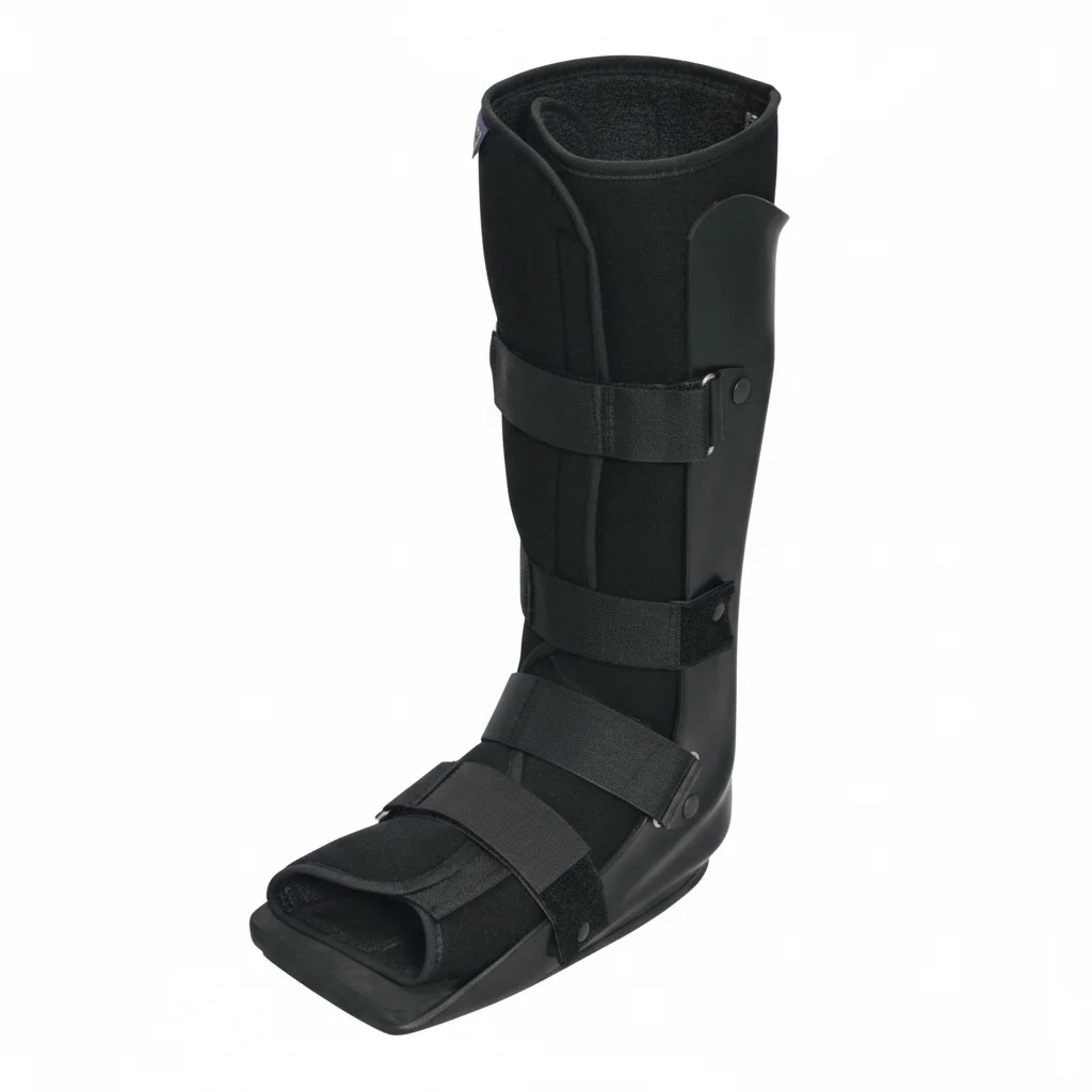 Indicaciones: Rehabilitación ambulatoria, fracturas de pie y tobillo, roturas y lesiones de ligamentos y tendones, esguinces, reparación de lesión del tendón de Aquiles, sustituto de fijación con yeso. Con almohadilla de bondeado velour removible y suela curva antideslizante. Recomendado para distribución uniforme del peso corporal sobre la superficie plantar.