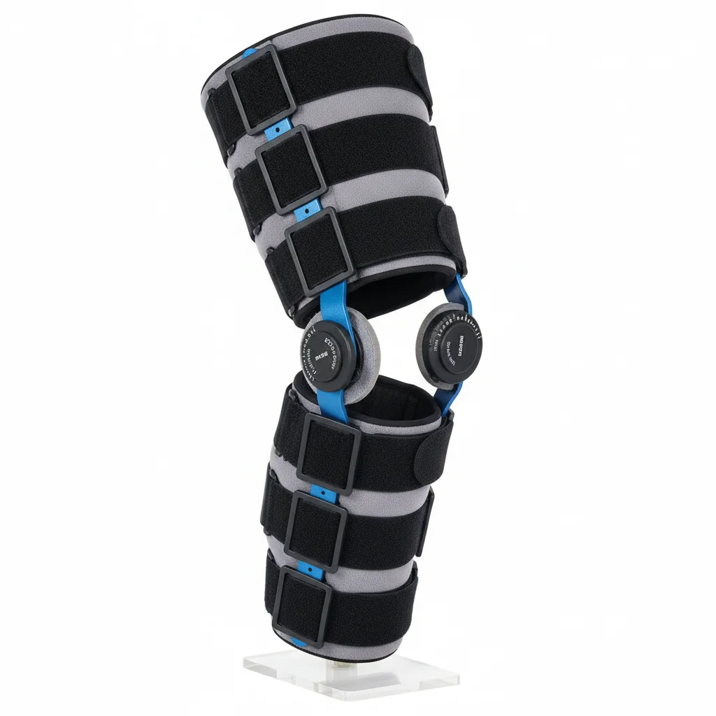 Indicaciones: Férula post-operatoria, rehabilitación, lesiones ligamentarias, hiperextensión de la rodilla (recurvatum), varo y valgo moderados, inestabilidades ligamentarias crónicas. Férula de exclusiva articulación construida en acero inoxidable, que permite un rango de movimiento (ROM) incremental en 10°, entre -20° de hiper-extensión y 120° de flexión.
