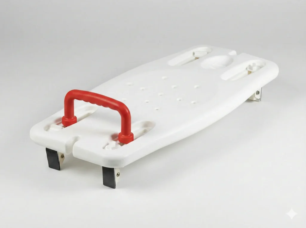 Tabla para bañera fabricada en plástico blanco reforzado. Cuenta con agujeros de drenaje, jabonera integral y agarradera de seguridad. Incluye trabas antideslizantes ajustables para cualquier bañera con ancho superior interno de 57-70cm. Soporta un peso máximo de 110Kg.